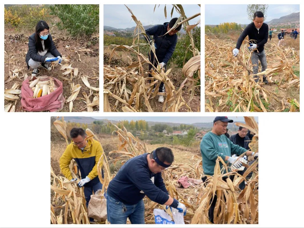 玉米地內(nèi),大家擼起袖子默契協(xié)作,有的采摘玉米,有的負責(zé)運送,有的負責(zé)砍玉米桿……處處都是大家忙碌的身影。經(jīng)過大半天的齊心協(xié)力,大家終于把玉米全部收完。